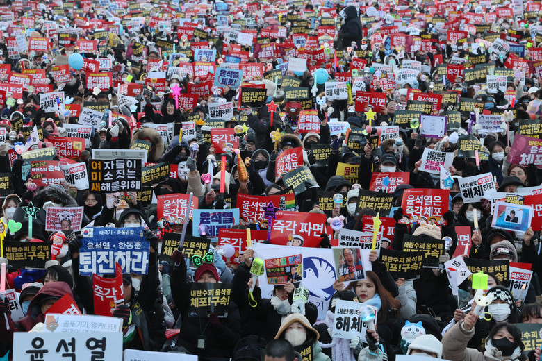 오후 3시 50분 기준 경찰 비공식 추산 2만5천명이 참가했다. 주최 측은 현재 인원을 집계 중이라고 밝혔다.참가자들은 퇴진집회의 '상징'과 같은 도구가 된 응원봉을 들고 "윤석열을 즉각 파면하라", "즉각 체포하라" 등 구호를 외쳤다.소녀시대의 '다시 만난 세계'를 함께 부르기도 했다.양경수 전국민주노동조합총연맹 위원장은 서울고용노동청 앞에서 열린 사전 집회에서 "계엄에 동조하고 내란을 방조했던 자들을 낱낱이 색출해 단호하게 처벌해야 한다"고 외쳤다. 노조원들은 사전집회 종료 후 동십자각 집회에 합류했다.