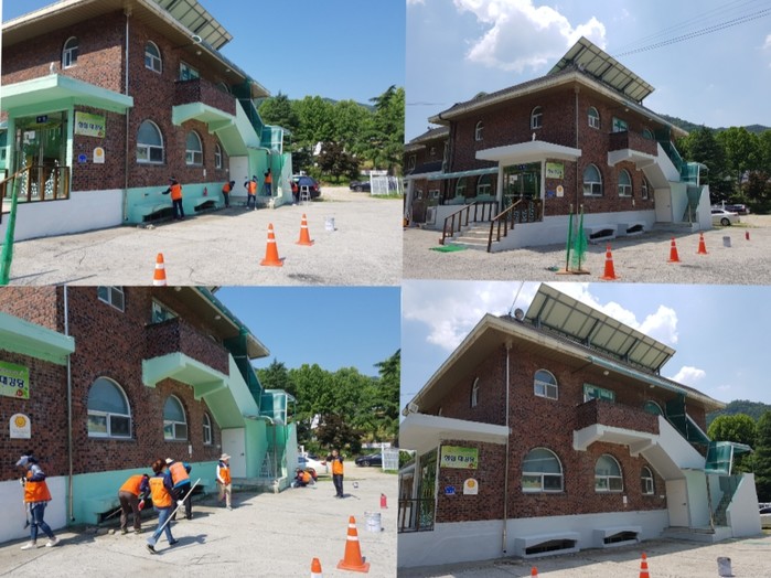 이날 페인트 도색 봉사에는 김준민 단장을 비롯해서 회원 20명이 4개동의 건물 외벽 페인트 봉사를 하였다.
