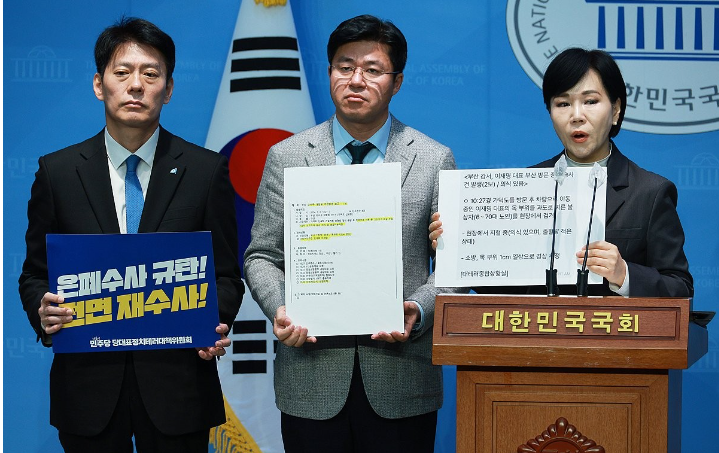 민주당은 정부와 여당에 김건희 특검 수용도 재차 압박했다.권 수석대변인은 도이치모터스 주가조작 주도자의 외장하드에서 김건희 블록딜이라는 엑셀 파일이 나왔다는 보도를 인용하며 김 여사와 핵심 주범들과의 관련성을 보여주는 증거가 굴비 엮듯 나오고 있다고 주장했다.