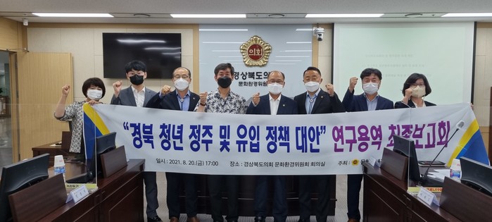[경북=세계타임즈 한성국 기자] 경북도의회 의원연구단체인 문화청년경제정책연구회(대표 박태춘 의원, 비례)는 20일 도의회 문화환경위 회의실에서 “경북 청년 정주 및 유입 정책 대안 연구용역” 최종보고회를 개최하였다.