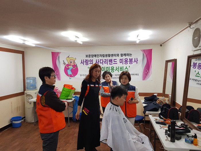 [세계타임즈 이장성 기자] SNS 대전시 봉사단체 사랑의 사다리 밴드(리더 이정제)는 15일 오전10시, 동구 판암동에 위치한 보문장애인자립생활센터(센터장 신인수)에서 미용봉사로 우리 사회의 따뜻한 사랑을 전달 하였다.