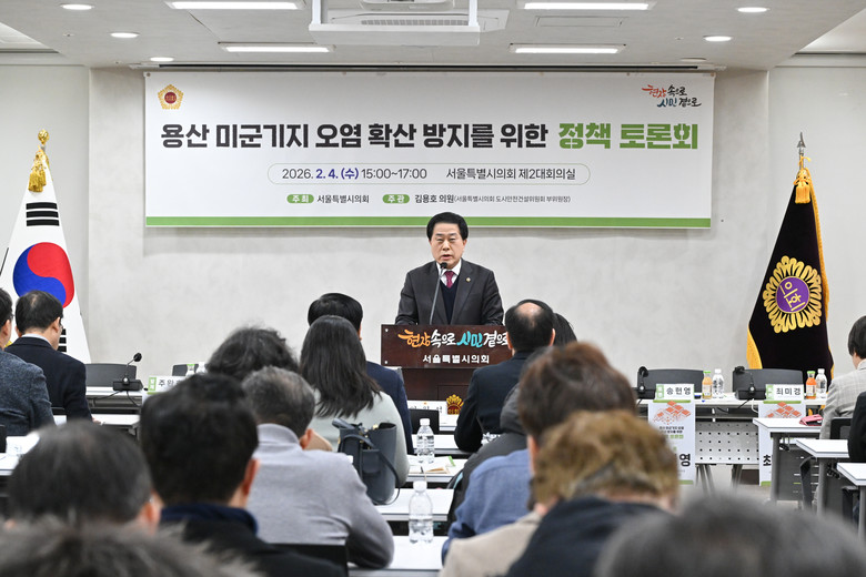 [서울 세계타임즈=이장성 기자] 서울특별시의회 도시안전건설위원회 부위원장으로 활동하고 있는 김용호 시의원(국민의힘, 용산1)은 지난 2월 4일 서울특별시의회 별관 제2대회의실에서 「용산 미군기지 오염 확산 방지, 시민 건강 및 안전 보호를 위한 정책 토론회」를 개최했다. 이날 토론회에서는 용산 미군기지 일대 토양·지하수 오염 문제에 대한 전문가 의견과 관련 제도적 쟁점이 논의됐다.