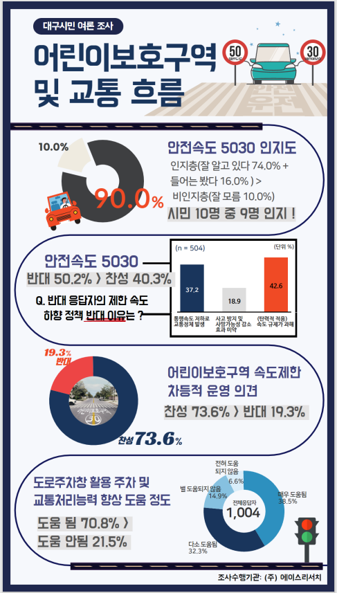 강성환 의원은 “올해 5월에 대표 발의해서 제정한「대구광역시 여론조사 조례」에 의거 최근 여론조사를 실시한 결과, 어린이보호구역 내에서 야간, 새벽, 토·일·공휴일에는 30㎞, 40㎞ 속도제한을 해제해야 한다는 의견과 교통 소통에 지장이 없는 한적한 도로 양측 면에 노상주차장을 설치하여 주차불편을 해소하여야 한다는 의견에 대구시민 10명 중 7명이 찬성하는 것으로 나타났다”라고 밝혔다.