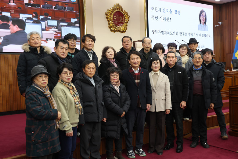 [강원도 세계타임즈=김민석 기자] 강원특별자치도의회(의장 김시성)가 의회의 역할을 알리고 도민과의 소통을 확대하기 위해 도민 대상의 견학 프로그램을 운영 중인 가운데, 1월 9일(목) ‘신북읍ㆍ동면’ 주민을 대상으로 견학 프로그램을 진행했다.
