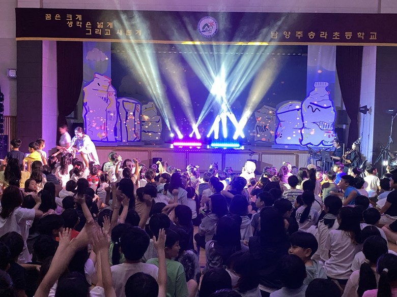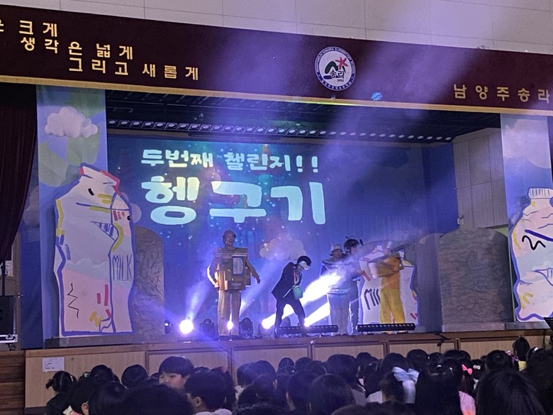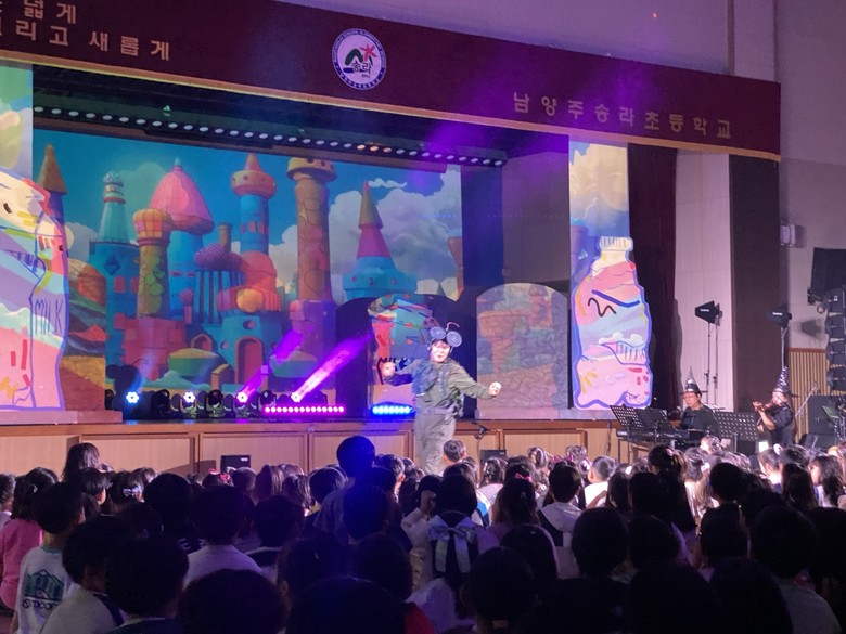 [남양주시 세계타임즈=송민수 기자] 남양주송라초등학교(교장 김영석)는 9월 18일(목) 오후 1시부터 약 50분 가량 환경뮤지컬 ‘꼬옥이와 함께하는 두근두근 새로나 챌린지’를 관람하였다.