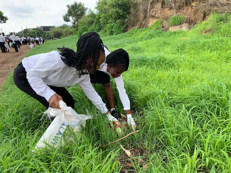 | ▲ 지난 6일 제7회 ‘빛과 소금 거리 청소 봉사’에 참여한 수료생들이 음바야니 거리를 청소하고 있다. [사진 제공 = 신천지 바돌로매지파 말라위지역] |