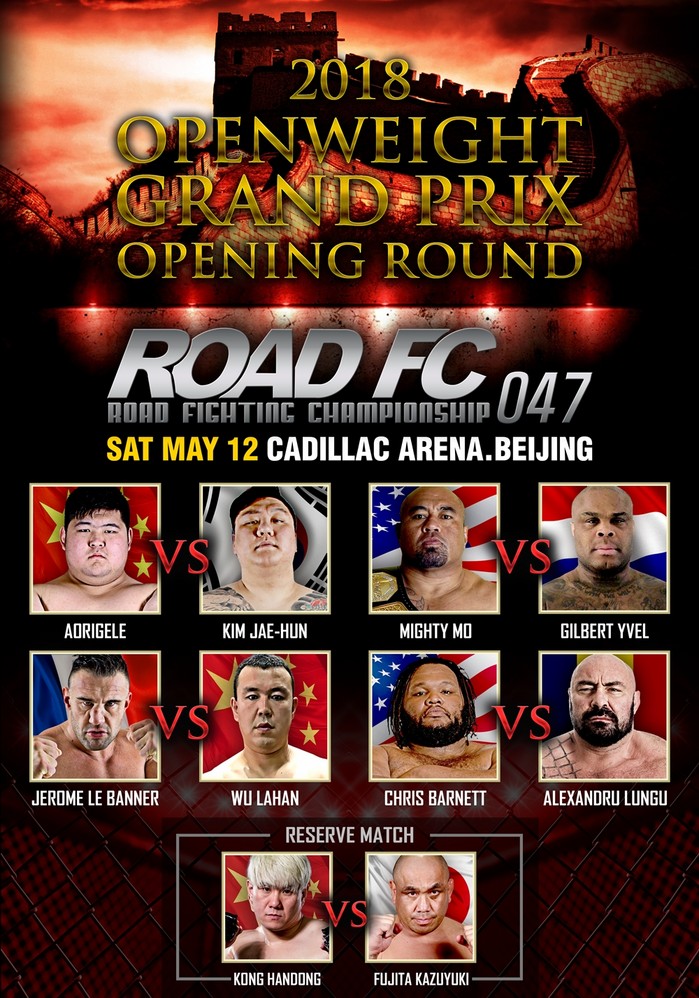 [세계타임즈 김인수 기자] ‘Asia No.1’ ROAD FC(로드FC)의 또 하나의 대형 프로젝트인 2018 ROAD FC 무제한급 그랑프리 8강전의 대진이 확정됐다. 5월 12일 중국 북경 캐딜락 아레나에서 개최되는 ROAD FC 047에서 열릴 이번 그랑프리에는 제롬 르 밴너, 마이티 모, 길버트 아이블, 알렉산드루 룬구 등 전설적인 파이터들이 총출동한다. 그리고 아오르꺼러, 크리스 바넷, 우라한, 김재훈 등 젊고 성장세가 뚜렷한 파이터들까지 그랑프리에 참전하며 그 어느 때보다 흥미진진한 대진이 완성됐다.