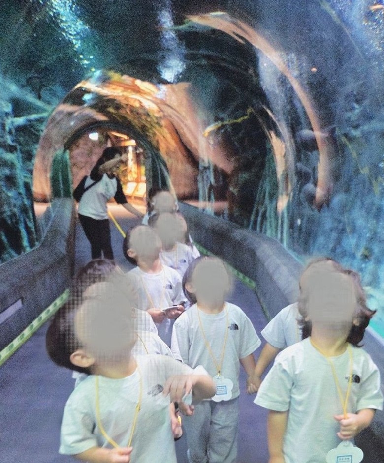 9월 17일, 3세 새빛반 유아들은 롯데월드 아쿠아리움에서 커다란 수족관 속을 헤엄치는 상어와 가오리, 알록달록한 열대어 등 다양한 해양 생물을 가까이 관찰하며 호기심과 탐구심을 키웠다.