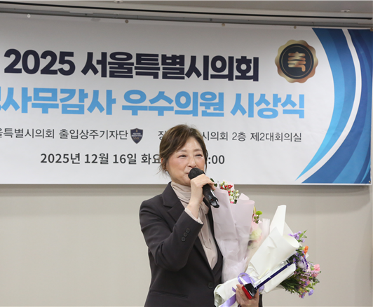 최유희 의원은 수상 소감을 통해 “행정사무감사는 시민의 삶을 대신해 행정을 점검하는 의회의 중요한 책무”라며 “앞으로도 시민의 안전과 생활에 직결된 행정 현안을 꼼꼼히 살피고, 현장에서 체감할 수 있는 변화로 이어질 수 있도록 책임 있는 의정활동을 이어가겠다”고 밝혔다.