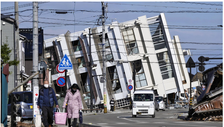 이번 강진 피해를 상징하는 이 건물은 마치 식물의 뿌리가 뽑히듯 넘어졌다. 넘어진 건물 외벽에는 쩍쩍 갈라진 금이 선명했다. 건물 내부에 있던 목재는 쓰러질 때 충격으로 뒤죽박죽이 됐다.자위대는 전날 이 건물에서 사람들을 구조했고, 소방 당국은 건물 내부 진입을 시도했다.