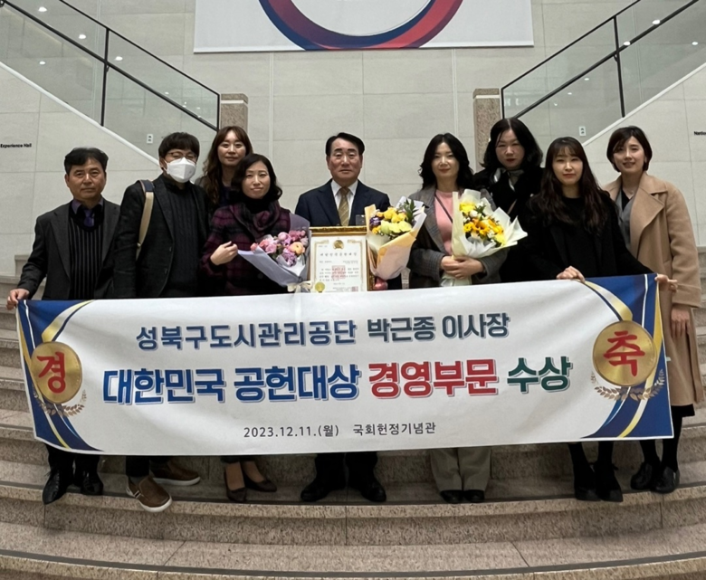 [세계타임즈 = 심귀영 기자] 성북구도시관리공단 박근종 이사장은 12월 11일 국회 헌정기념관에서 개최한 ‘2023 제4회 대한민국 공헌대상’ 시상식에서 영예로운 행정·경영대상을 수상했다.