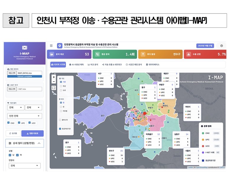 이송 흐름도와 시공간 패턴 분석을 통한 ‘아이맵’은 부적정 사례 분석 및 환류 과정에서 핵심적인 역할을 수행하며, 특히 119구급대와 응급의료기관이 사례를 공유하고 해결 방안을 모색하는 과정에서 중요한 판단 근거가 될 전망이다.