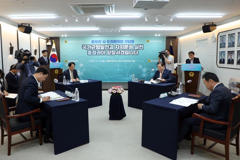 충청권 4개 시도의회 의장단(이하 의장단)은 15일 세종시의회 1층 대회의실에서 충청권 상생 발전을 위한 간담회를 열고 특별지방자치단체 광역의회 구성 계획과 2027년 하계세계대학경기대회 성공 개최를 위한 상호 협력 방안 등을 심도 있게 논의했다.