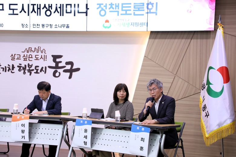 [동구 세계타임즈=심하린 기자] 인천 동구의회 최훈 의원이 4일 인천 동구청 소나무홀에서 열린 『2024년도 동구 도시재생 토론회』에 토론자로 참여했다.