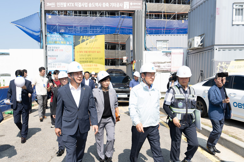 정해권 의장은 29일 유정복 인천시장, 인천시의회 김대중 건설교통위원장(국・미추홀구2), 김종배(국・미추홀구4).유승분(국・연수3) 의원 등과 함께 송도역 KTX복합환승시설 공사 현장을 방문해 사업 추진 현황을 점검하고, 시민을 위한 교통.문화 복합공간 구축과 폭염 속 안전관리 강화를 당부했다.