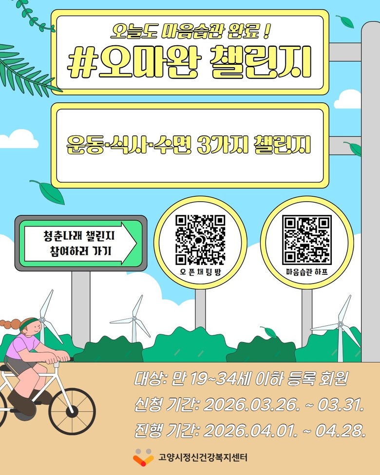 이번 챌린지는 청년층의 건강한 생활 형성을 돕고, 온라인 프로그램 참여를 통해 운동·식사·수면 등 생활 전반의 균형 있는 관리를 유도해 일상 회복과 사회적 연결을 촉진하고자 기획됐다.