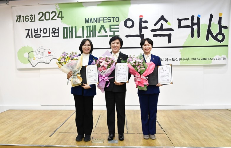 올해로 16회를 맞은 ‘지방의원 매니페스토 약속대상’은 (사)한국매니페스토실천본부가 주최해 지방의회의 역량 강화 및 주민 신뢰 기반 구축을 목적으로 매년 시행되며, 전국 지방의원을 대상으로 공약이행, 좋은조례 분야를 대상으로 공모 접수하여 엄격한 심사를 거쳐 진행되었다.