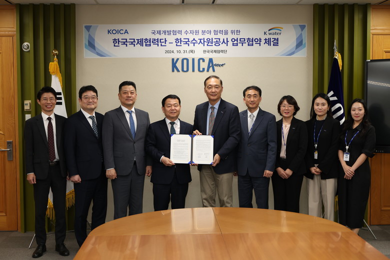 [세계타임즈 = 이영진 기자] 한국수자원공사(K-water, 사장 윤석대)는 한국국제협력단(KOICA, 이사장 장원삼)과 10월 31일 경기도 성남 한국국제협력단 본사에서 국제개발협력 활성화 등을 위해 ‘수자원 분야 국제개발협력사업 상호 협력을 위한 업무협약’을 체결했다.