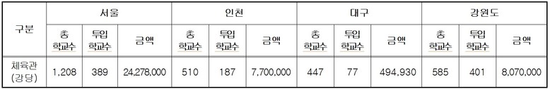 실제로 체육관 공기정화시설 예산을 비교하면, 서울의 경우 최근 3년간 약 243억의 예산이 투입된 데 비해 부산의 투입예산은 4억에 불과했다.