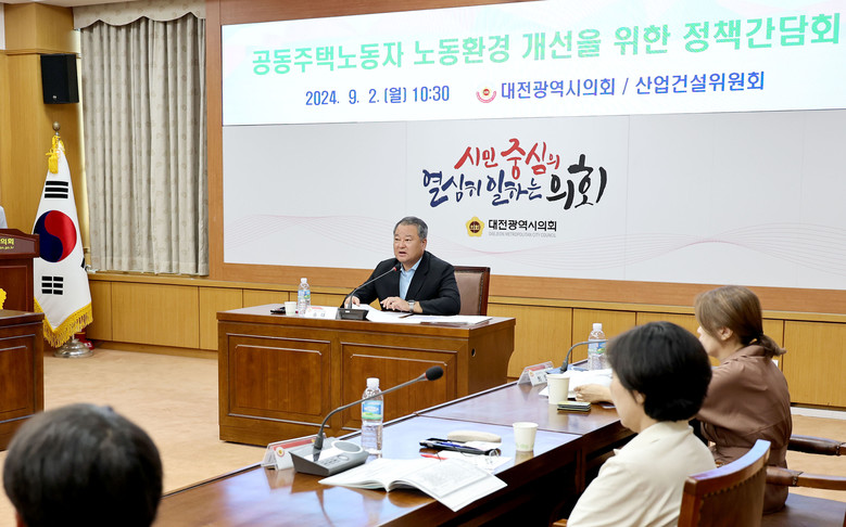 [대전 세계타임즈=이채봉 기자] 대전시의회 송대윤 의원(더불어민주당, 유성구 2)은 2일 시의회 소통실에서 ‘공동주택노동자 노동환경 개선을 위한 정책간담회'를 개최했다.