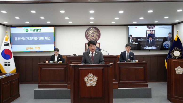 [동두천시 세계타임즈=송민수 기자] 동두천시의회 김재수 의원(더불어민주당, 가 선거구)은 25일 열린 제344회 임시회 개회식에서 건실한 시정 운영을 촉구하는 5분 자유발언을 진행했다.