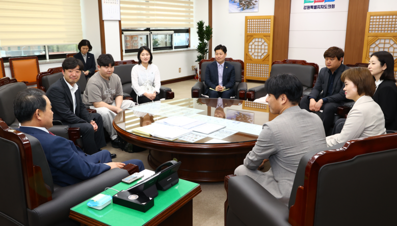 [강원도 세계타임즈=김민석 기자] 김용래 강원특별자치도의원(국민의힘, 강릉)은 최근 강릉커피협회, 춘천커피협회 관계자들과 함께 강원도청 경제국장을 만나 도 차원의 커피산업 육성 방안에 대해 논의하는 간담회를 개최했다. 이어 강원도의회 김시성 의장과도 간담회를 열고, 커피산업에 대한 도의회의 정책적 뒷받침을 당부했다.
