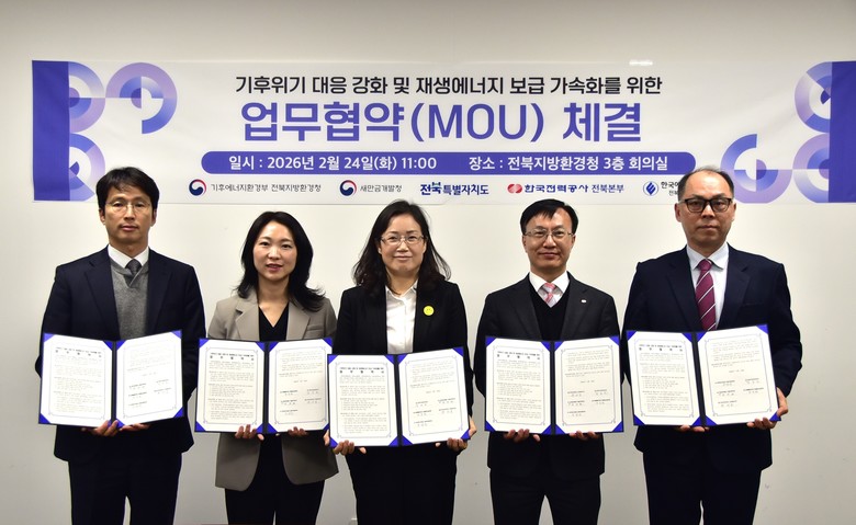 김호은 전북지방환경청장은 “이번 업무협약은 환경부가 기후에너지환경부로 확대·개편된 이후 재생에너지 보급 업무를 관계기관과 함께하는 의미있는 시작”이라며, “각 기관의 강점을 모아 협력하여 실질적인 성과로 이어질 수 있도록 현장 대응력을 높여 나가겠다”라고 밝혔다.