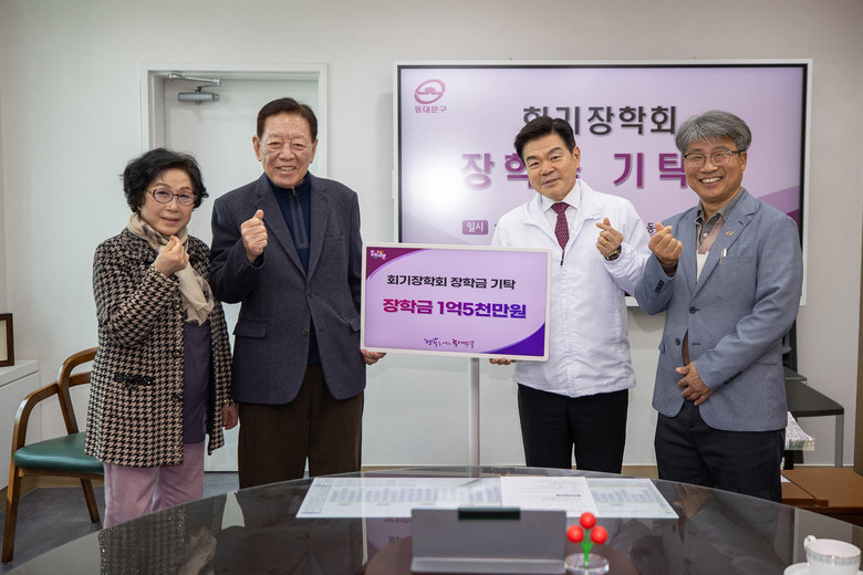 이필형 동대문구청장은 “지역 인재 육성을 위해 1억 5,000만원이라는 큰 금액을 쾌척해주신 회기장학회에 진심으로 감사드린다”며 “기탁해주신 소중한 장학금은 지역의 미래인 우리 학생들이 안정적인 환경에서 학업에 전념할 수 있도록 소중히 사용하겠다”고 화답했다.