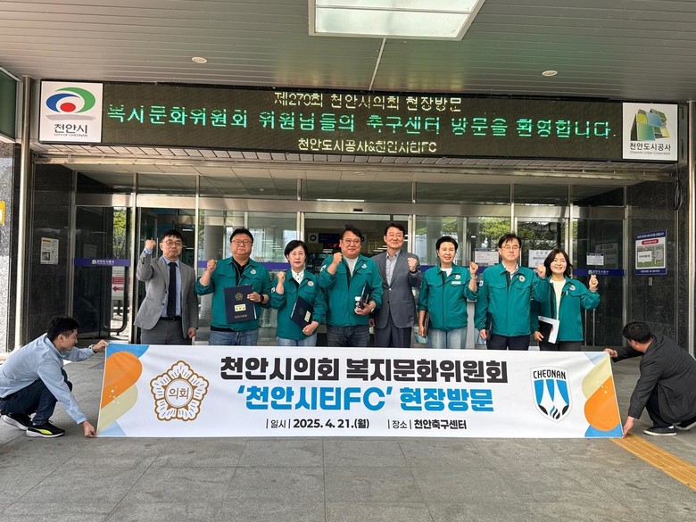 이종만 복지문화위원장은 “이번 현장방문은 천안시민의 복지·문화·체육 등 다양한 욕구에 적극 대응하기 위한 천안시의 정책과 행정을 점검하는 뜻깊은 시간이었으며 앞으로도 시민 삶의 질 향상을 위한 현장 중심의 의정활동에 최선을 다하겠다.”고 말했다.