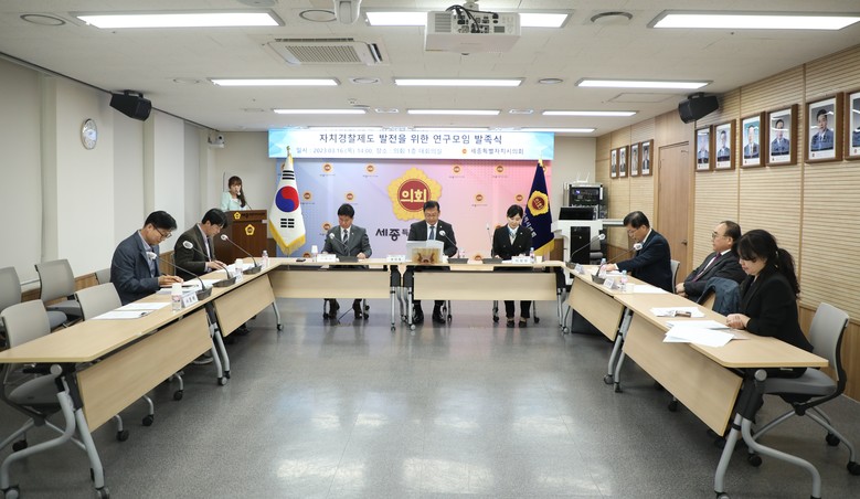 [세종 세계타임즈=이채봉 기자] 세종특별자치시의회는 16일 의회청사 1층 대회의실에서 ‘자치경찰제도 발전을 위한 연구모임’을 발족하고 연간 활동 계획 등을 논의하는 간담회를 진행했다.