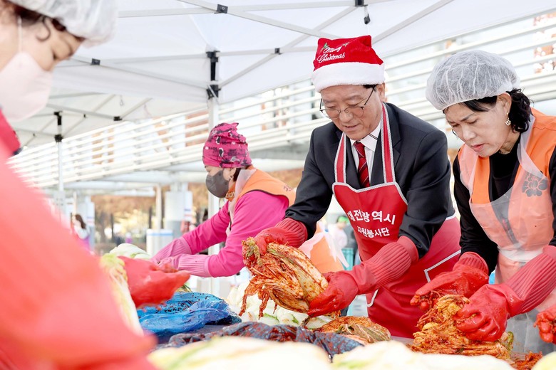 [대전 세계타임즈=이채봉 기자] 대전시의회 조원휘 의장은 12일 ‘제16회 따뜻한 겨울나기 김장대봉사’가 진행된 엑스포 시민광장을 찾아 “여러분의 정성과 따뜻한 마음이 담긴 손길 덕분에 우리 이웃의 겨울이 더욱더 따뜻해질 것”이라고 말하고, 자원봉사자들의 이웃사랑 실천에 감사의 마음을 전했다.