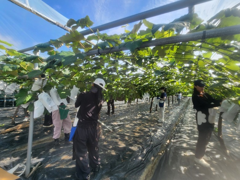 일손 부족으로 어려움을 겪고 있는 농가의 부담을 조금이라도 덜어 주고자 60여명의 직원들이 아영면 소재의 포도 농가를 찾아 봉지씌우기 작업을 도우며 구슬땀을 흘렸다.