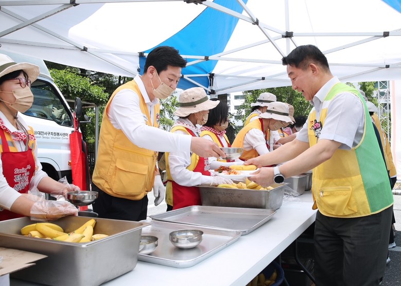 현장을 찾은 서철모 구청장은 “어려운 이웃과 어르신들에게 안부를 전하고 따뜻한 한 끼의 나눔을 실천할 수 있어 기쁘다”며 “소외된 이웃을 보살피고 모두가 어우러진 서구를 만들어 가는데 온 힘을 다하겠다”고 말했다.