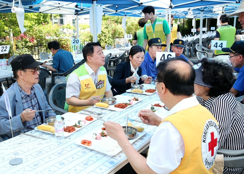 [서구 세계타임즈=이채봉 기자] 대전 서구(구청장 서철모) 자원봉사센터(이사장 손선락)는 지난 11일 만년동 상록수아파트에서 지역 거주 어르신 400여 명을 대상으로 `IBK기업은행과 함께하는 참 좋은 사랑의 밥차'(이하 사랑의 밥차) 활동을 펼쳤다.