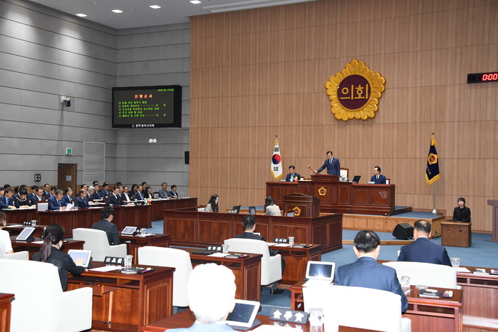 [광주=세계타임즈 손권일 기자] 광주광역시의회(의장 김동찬)는 5월 17일 오전 9시, 시의회 본회의장에서 제279회 임시회 제6차 본회의를 개최하고 11일간의 회기를 마무리 지었다.
