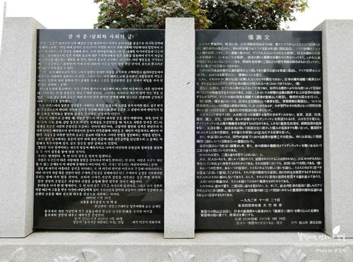 두 번째는 2015년 광복 70주년을 맞아 평화의 소녀상이 동국사에 설치된 되었는데, 건립기금 모금액 중에 일본에서 100만엔을 기부한 사건이다. 우리나라에서는 처음으로 사찰 경내에 평화의 소녀상이 세워졌는데, 군산 평화의 소녀상 건립 위원회가 시민들을 대상으로 모금 운동을 했다. 그 모금에 일본의 시민단체 '동지회'가 참여한 것이다. 일제강점기 자국의 과거사를 반성하는 의미를 담았다고 하면서! 비록 소수의 참회지만, 진정성 있고 뭉클한 사건이 아닌가?