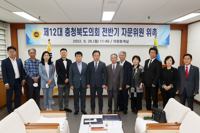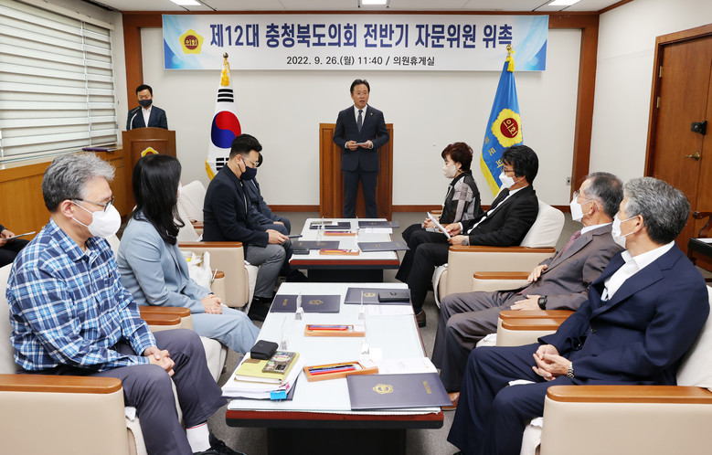 [충북 세계타임즈=이현진 기자] 충북도의회(의장 황영호)는 26일(월) 의원 회의실에서 외부 전문가로 구성된 제12대 의회 전반기 자문위원 15명을 위촉했다. 위촉된 자문위원들은 각 상임위원회의 중요 정책 사안이나 전문지식을 요하는 안건의 심사와 위원회 활동에 필요한 자문과 지원을 하게 된다.