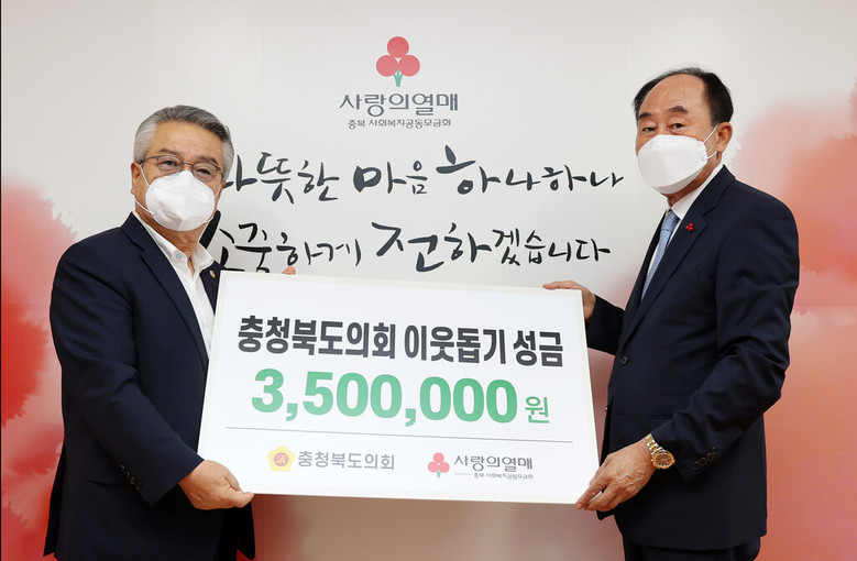 노영수 회장도 “지속적인 기부를 통해 지역민과 함께 해 주신 충청북도의회에 감사드린다.”며 “전달해 주신 기부금은 주변에 어려운 이웃과 소외계층 등에게 큰 도움이 될 것”이라고 화답했다.