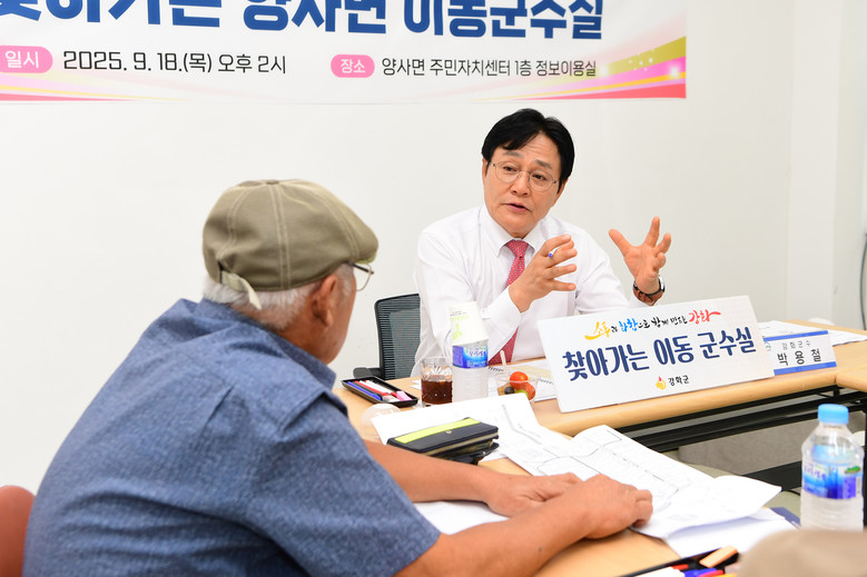 한편, ‘찾아가는 이동 군수실’은 박용철 군수의 대표 소통 공약으로, 군수가 직접 읍·면을 찾아 주민들의 고충을 청취하고 현장에서 해결방안을 모색하는 소통 창구다.