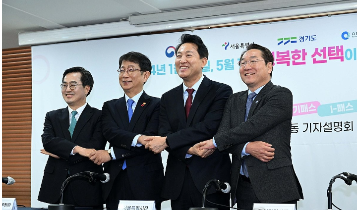 [세계타임즈 = 이장성 기자] 정부와 수도권 3개 광역 지방자치단체가 국민들의 대중교통비 부담을 덜기 위해 이용료 환급과 무제한 이용 등의 교통카드 혜택을 제공한다.국토교통부와 서울시, 인천시, 경기도는 22일 서울 중구 프레스센터에서 합동 기자설명회를 열어 정부·지자체의 대중교통비 지원 사업을 소개하고 4자 협력을 통한 혜택 확대를 약속했다.서울시는 오는 27일부터 '기후동행카드' 시범사업을 시작한다. 전면 시행은 오는 7월부터다.정부와 경기도는 오는 5월부터 각각 K-패스와 더(The) 경기패스를 시행하고, 인천시는 인천 I-패스를 오는 5월 적용을 목표로 준비하고 있다.서울시의 기후동행카드는 한 달에 6만2천원(따릉이 포함 시 6만5천원)을 내면 시내버스나 서울 시내 지하철 등을 무제한으로 이용할 수 있도록 하는 방식이다.K-패스, 더 경기패스, 인천 I-패스는 한 달에 15회 이상 정기적으로 대중교통을 이용하면 지출 금액의 일정 비율을 환급해 주는 방식이다. 환급률은 일반인의 경우 20%, 청년 30%, 저소득층 53% 등이다.K-패스의 지원 상한이 월 최대 60회라면 경기·인천 패스는 지원 횟수 제한이 없다. 이에 따라 경기·인천 거주자는 한 달에 대중교통을 60회 넘게 이용할 경우 초과분을 각 지자체 패스를 통해 환급받을 수 있다.예를 들어 인천시 연수구민이 한 달에 대중교통을 70회 이용했다면 60회 이용분까지는 K-패스로, 나머지 10회는 인천 I-패스로 환급받으면 된다.경기·인천 패스는 청년층 연령 확대, 65세 이상 어르신 환급 혜택 상향 등 각 지역 여건에 따라 추가 혜택이 주어진다.서울시는 아울러 올해 상반기 중 기후동행카드 청년권을 출시한다. 이를 통해 만 19∼34세 청년은 월 5만8천원가량에 대중교통 무제한 이용 혜택을 누릴 수 있게 된다.서울시민은 K-패스와 기후동행카드 중 대중교통 이용 패턴과 지역에 따라 더 유리한 카드를 선택할 수 있다.정부와 서울시, 경기도, 인천시가 이름과 혜택 등이 각기 다른 대중교통비 지원 혜택을 내놓은 어떤 교통카드를 선택할지를 놓고 혼선이 불거질 수 있다는 지적도 나온다.박상우 국토부 장관은 대중교통 이용은 개인별로 패턴이 있어 하나의 방식보다는 다양한 선택지를 드리는 게 좋다는 것이 정부와 각 지자체의 공통된 생각이라며 정부가 프로그램을 만들고, 지자체는 이와 병행해 통행 패턴에 맞춰 개선해 나가면 주민들이 그렇게 혼란스럽지 않을 것이라고 말했다.초기 혼란을 줄이기 위해 구체적인 혜택과 적용 범위 등은 정부와 지자체가 협력해 상세히 안내하겠다고 박 장관은 덧붙였다.지자체장은 추후 서울과 경기, 인천의 대중교통 할인 혜택을 통합하는 방안도 검토하겠다는 입장이다.3개 광역지자체는 우선 수도권에서 통합적으로 교통비를 지원할 최적의 방안을 도출하기 위해 공동 연구용역을 추진하고 있다.오세훈 서울시장은 과거 서울을 시작으로 약 8년에 걸쳐 경기도, 인천으로 확대된 수도권 통합환승할인 제도를 언급하며 끊임없는 통합 노력을 기울여서 혜택을 선택하시는 데 혼란을 최소화해 나가는 노력은 계속해서 기울여 나가겠다고 밝혔다.김동연 경기도지사와 유정복 인천시장도 국토부, 서울시와 협력해 혼란을 최소화하고 혜택을 넓히는 데 힘을 합치겠다는 입장을 밝혔다.박 장관은 대중교통비 지원 외에도 교통시설 확충, 버스·전철 증차 등 다양한 대중교통 활성화 정책이 원활히 추진될 수 있도록 적극 협력해 나가겠다고 밝혔다.