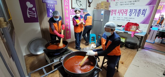 대전시지체장애인협회 동구지회 김연숙 회장은 “매월1회 사랑의 사다리 밴드 봉사단체에서 맛있는 밑반찬을 6년째 지원해 주어서 큰 힘과 위안이 된다.”면서 감사함을 전했다.