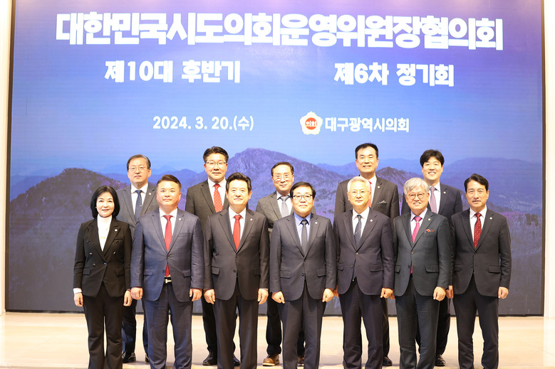[대구 세계타임즈=한윤석 기자] 제10대 후반기 대한민국시도의회운영위원장협의회(회장 이칠구 경북 운영위원장, 부회장 전경원 대구 운영위원장) 제6차 정기회가 20일 호텔 수성에서 개최되었다.