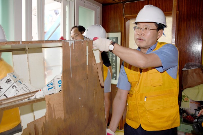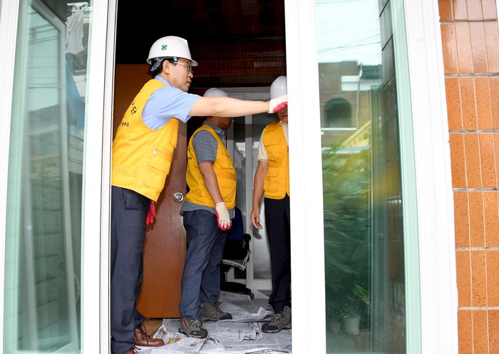 김동찬 의장을 비롯한 행복한 목수 봉사단은 낡은 방문과 유리창을 전면 교체하고 외벽 도장공사를 실시함으로써 노후된 집을 안전하고 쾌적한 환경으로 변모시켰다.