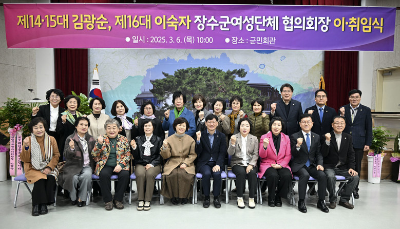 최훈식 군수는 “김광순 회장님의 헌신과 노고에 깊이 감사드리며 이숙자 신임 회장님의 취임을 축하드린다”며 “장수군도 양성이 평등하게 참여할 수 있는 지역 환경 조성을 위해 적극적으로 지원하겠다”고 전했다.