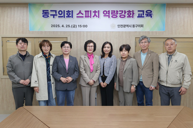 [동구 세계타임즈=심하린 기자] 인천 동구의회(의장 유옥분)는 25일, 동구의회 세미나실에서 구의원 및 의회사무과 직원을 대상으로 의정 역량 강화를 위한 스피치 교육을 실시했다.