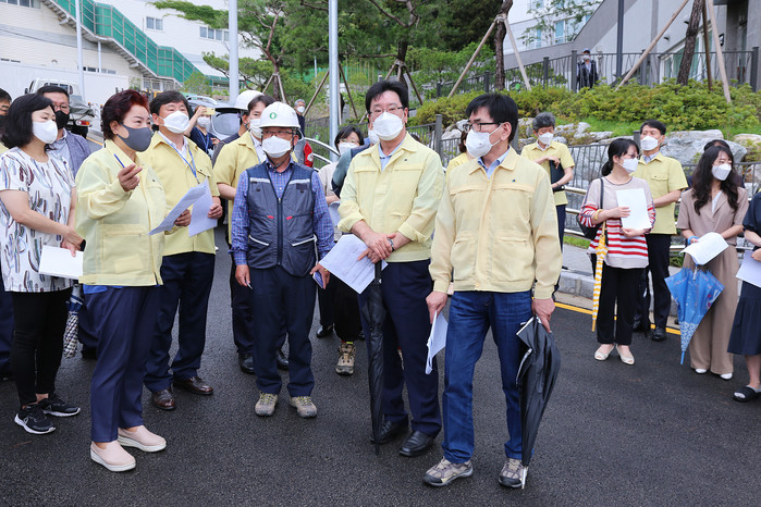 이순영 위원장은 “지역 발전을 위해 재개발 사업이 불가피하지만, 아이들의 학습권뿐만 아니라 건강권까지 침해받고 있는 것에 대해서는 철저히 살피고 조치하도록 하겠다”며 “특히 집중호우 및 태풍 등 여름철 수해 피해를 최소화할 수 있도록 이번 현장점검에서 인지된 문제들에 대해서는 부산시교육청에 즉각적인 대응책 마련을 요구하고, 사고발생이 우려되는 기타 다른 학교현장에 대해서도 의회가 나서 꼼꼼히 살피도록 하겠다”고 강조했다.
