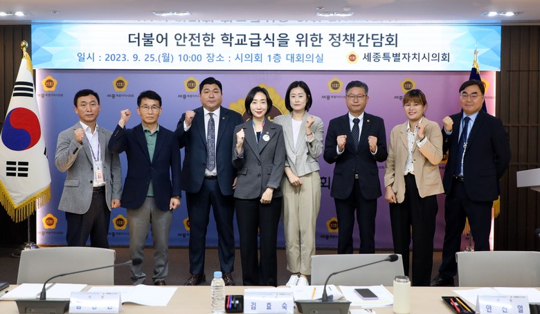 이날 간담회에는 교육안전위원회 김효숙·안신일 의원과 산업건설위원회 김영현 의원을 비롯해 정찬희 세종시보건환경연구원장, 세종시청 윤석춘 로컬푸드과장, 임숙종 보건정책과장, 세종시교육청 이현재 교육복지과장, 세종영양사회 김은미 회장, 세종시학교운영위원장연합회 박주아 급식분과위원장을 비롯해 학부모, 시민 등이 참석해 안전한 학교급식에 관한 다양한 의견과 대책을 논의했다.