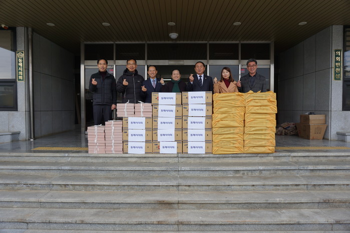 [동해시=세계타임즈 김민석 기자] 동해시의회(의장 최석찬)는 지난 1월 22일(수) 설명절을 앞두고 사랑의 손길이 필요한 관내 사회복지시설을 방문하여 떡, 과일 등 위문품을 전달하였다.