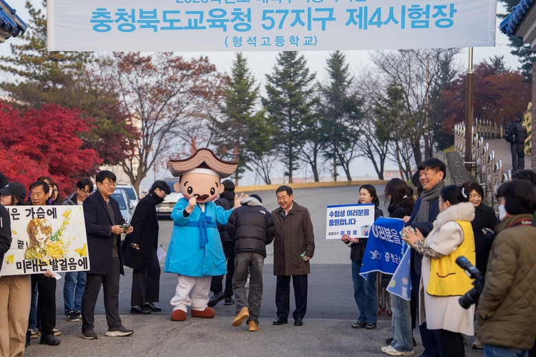 이날 형석고 앞은 이른 새벽부터 학생·학부모·교직원은 물론 증평군과 군의회, 교육청 관계자 등 지역사회 전체가 함께한 응원 열기로 가득했다.