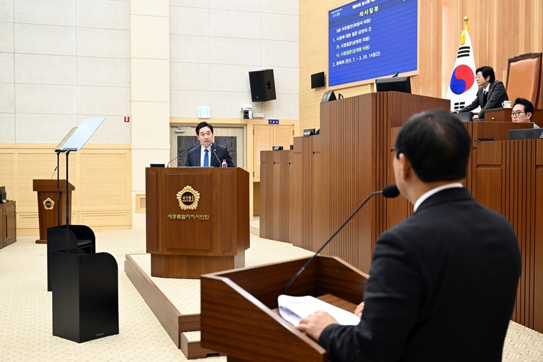 이날 시정질문에 나선 김재형 의원은 최민호 세종시장에게 3가지 주요 사안에 대해 일문일답 방식의 질의를 이어갔다.
